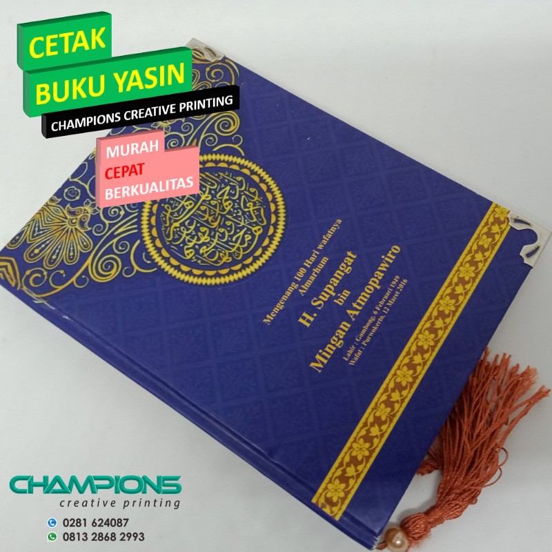 “CHAMPIONS Creative Printing adalah Pusat Percetakan yang Melayani Bikin Online Blangko Buku Yasin dan Tahlil dengan Harga Murah Di Kecamatan Sigaluh, Susukan, Wanadadi, Kota Banjarnegara.